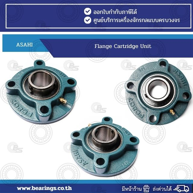 ASAHI UCFC 213 Flange Cartridge Unit are complete assemblies that combine an insert bearing with a housing, designed for easy installation, strong durability, and continuous operation across a wide range of industrial applications. The units use high-quality sealed bearings together with various housing styles, providing flexible use while resisting dust, contaminants, and vibration. They are ideal for machinery that requires stable performance and low maintenance, such as conveyor systems, agricultural machinery, and general factory equipment.