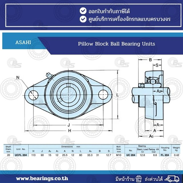 ASAHI UCFL 204 Two Bolt Flange Units are complete assemblies that combine an insert bearing with a housing, designed for easy installation, strong durability, and continuous operation across a wide range of industrial applications. The units use high-quality sealed bearings together with various housing styles, providing flexible use while resisting dust, contaminants, and vibration. They are ideal for machinery that requires stable performance and low maintenance, such as conveyor systems, agricultural machinery, and general factory equipment.