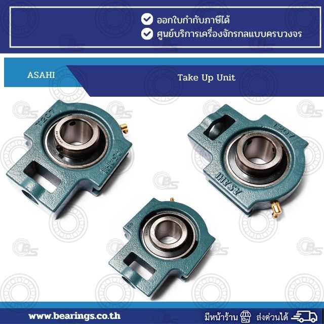 ASAHI UCT 203 Take Up Unit  are complete assemblies that combine an insert bearing with a housing, designed for easy installation, strong durability, and continuous operation across a wide range of industrial applications. The units use high-quality sealed bearings together with various housing styles, providing flexible use while resisting dust, contaminants, and vibration. They are ideal for machinery that requires stable performance and low maintenance, such as conveyor systems, agricultural machinery, and general factory equipment.