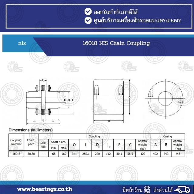 NIS 16018 Chain Coupling in the context of mechanical engineering and power transmission refers to a type of coupling used to connect two shafts. This coupling can transmit torque, while also allowing for some misalignment or flexibility between the shafts. NIS could refer to a specific brand, standard, or type of chain coupling, but without further context, it’s not immediately clear. Here are the general aspects: