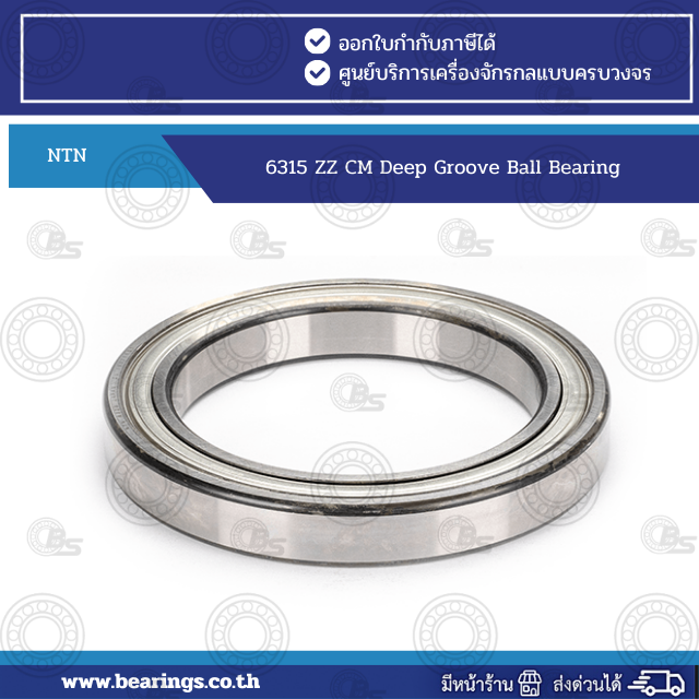 NTN 6315 ZZ CM Deep Groove Ball Bearing Single row radial ball bearings are the most widely used type of bearing. Their uninterrupted raceway design enables them to support radial loads as well as combined radial and axial (thrust) loads efficiently. This construction also maintains precision tolerances, even at high rotational speeds.